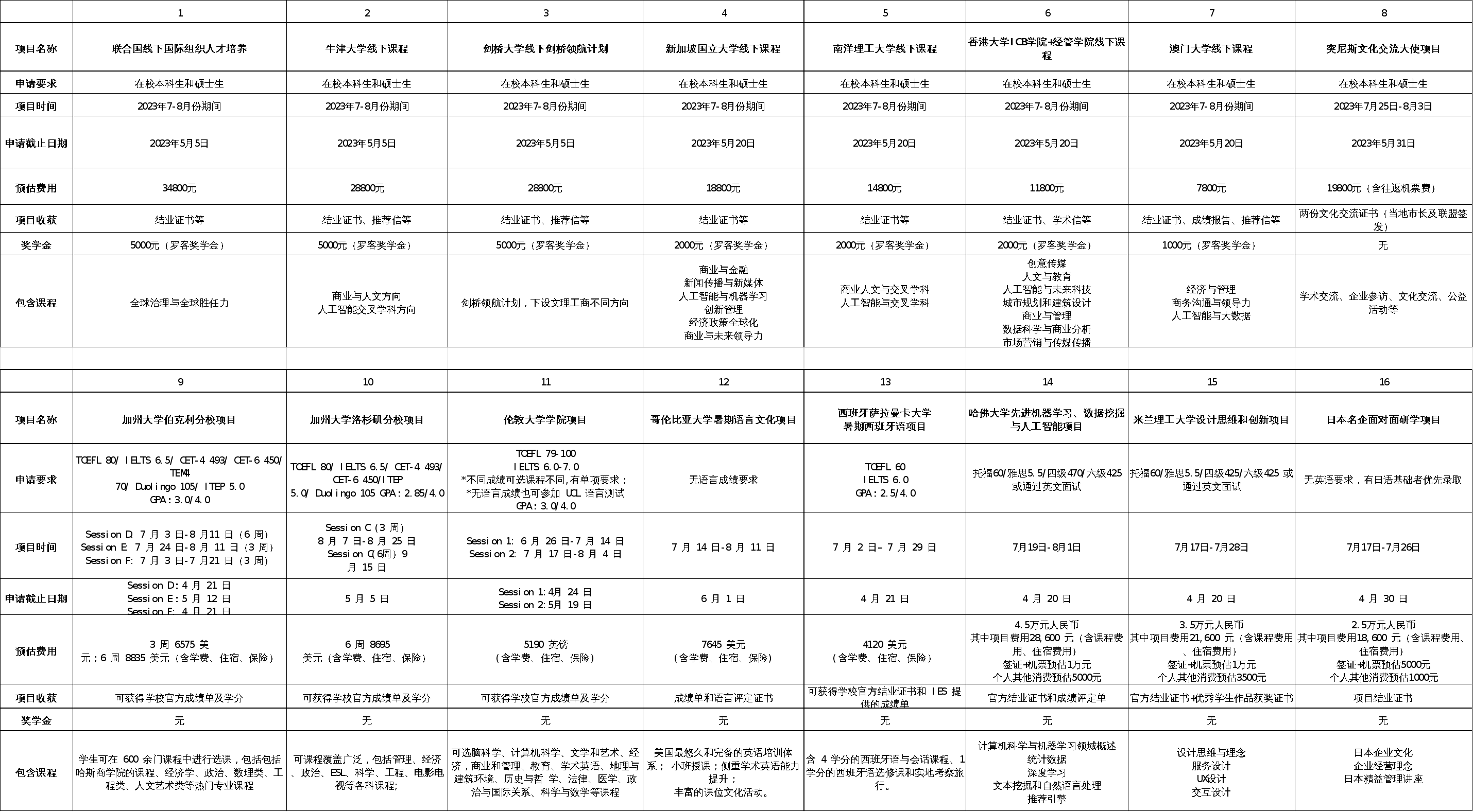 1.项目信息请见附件2:2023年暑期学术交流项目汇总表