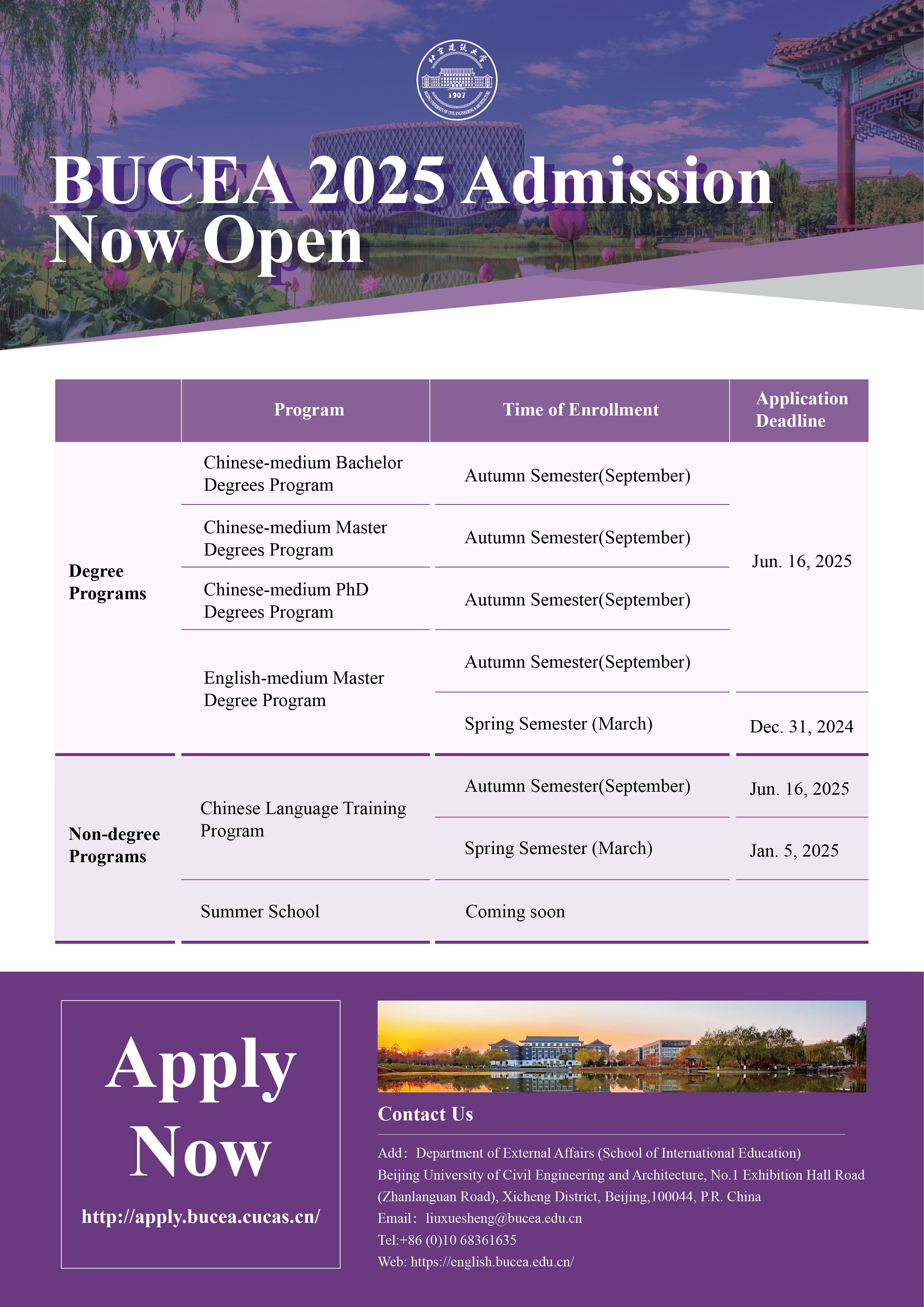 In 2025, BUCEA will carry out the following enrollment programs: