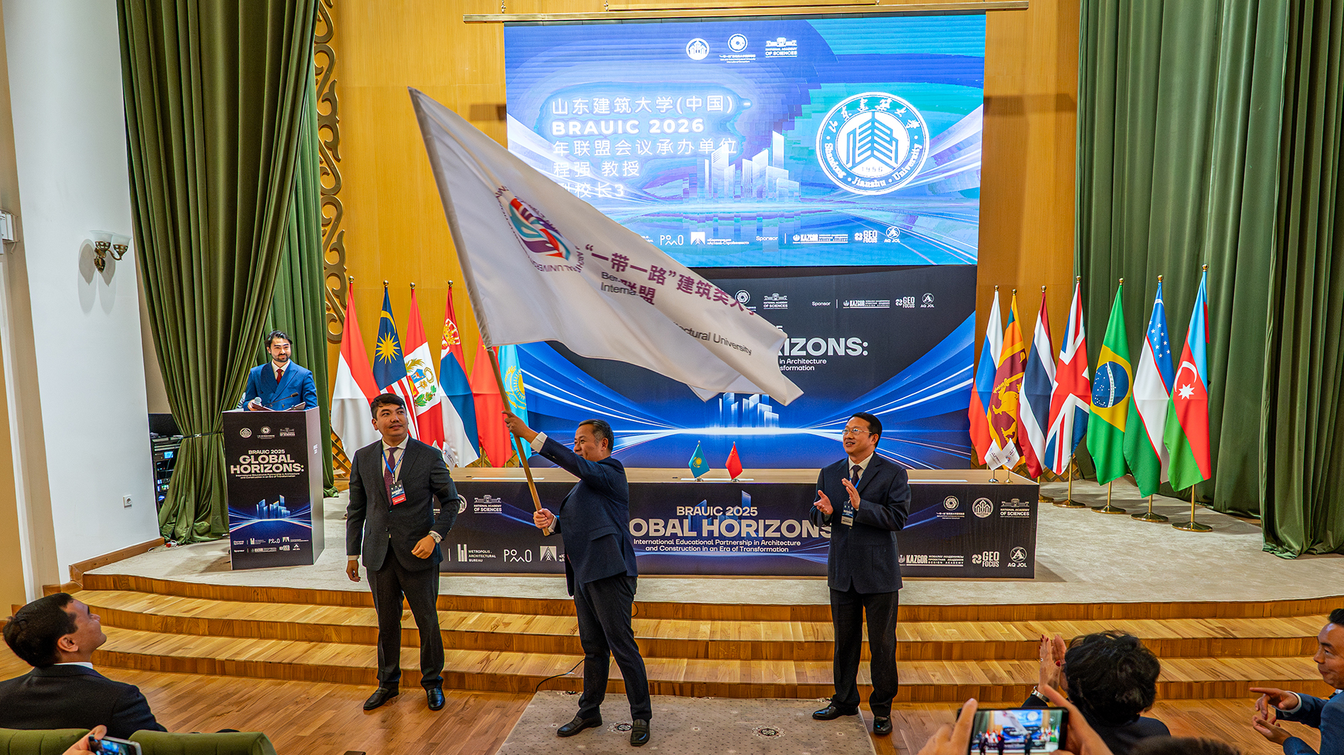与会代表一致同意,山东建筑大学将承办2026年联盟会议。在授旗仪式上,山东建筑大学副校长成强诚挚向各成员单位发出邀请,期待2026年在美丽的济南相聚。