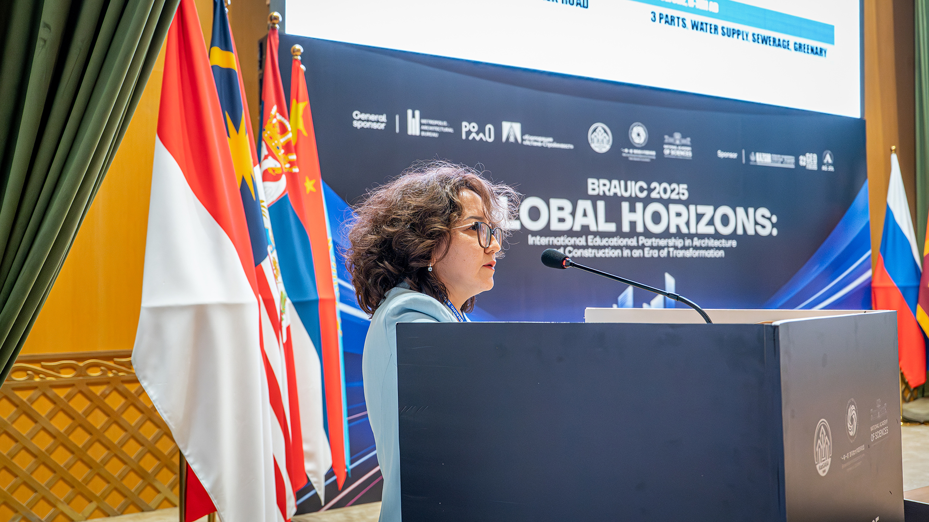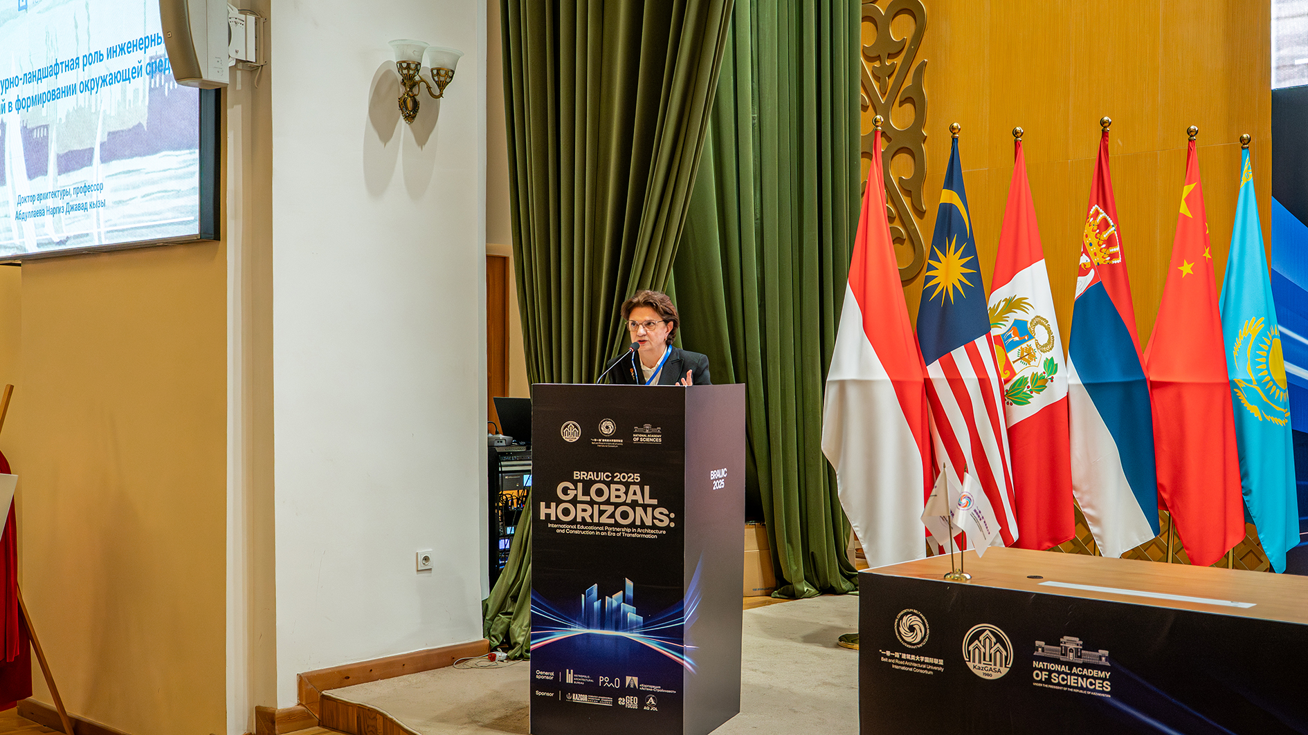 阿拉木图市政府副市长沙哈诺夫代表阿拉木图市对前来参加会议暨论坛的专家与学者表示热烈欢迎。他指出,阿拉木图作为一座融汇东西方文化与现代生活的城市,凭借其壮丽的自然风貌与深厚的文化底蕴,正日益成为国际建筑与城市发展对话的重要平台。他强调,建筑不仅是城市不可或缺的组成部分,更是传承历史的重要载体。本次论坛聚焦智能城市发展、支持青年专家与学生创新创业等关键目标,致力于通过战略对话孕育新合作、推动行业创新。他呼吁各方携手共建教育、科学与商业协同发展的国际共同体,希望本次论坛成为激发灵感、促进进步的重要象征,并预祝所有与会者在阿拉木图收获丰硕成果与难忘体验。