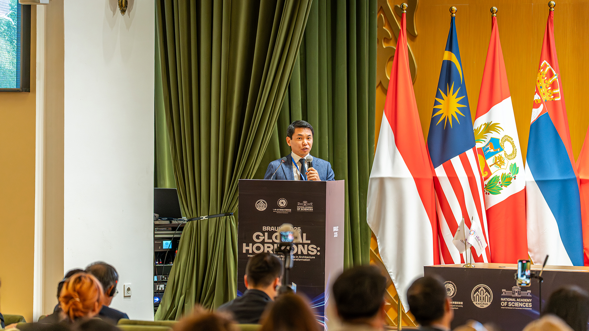 发起以来,已汇聚全球30余国超百余所高校与机构,成为推动建筑教育、科研与项目合作的关键平台。他强调,建筑与建设行业直接关乎人民生活质量、城市可持续性及文化遗产保护,本次论坛为各方提供了宝贵的面对面交流机会,将有力促进在智能城市等领域的跨部门协作。他进一步表达了哈萨克斯坦共和国国家科学院希望加入联盟的强烈意愿,期待在科研与国家发展方面开展更深层次合作,并相信此次盛会将成为推动哈萨克斯坦城市发展、深化国际合作的崭新起点,给所有与会者留下美好而深刻的阿拉木图印象。